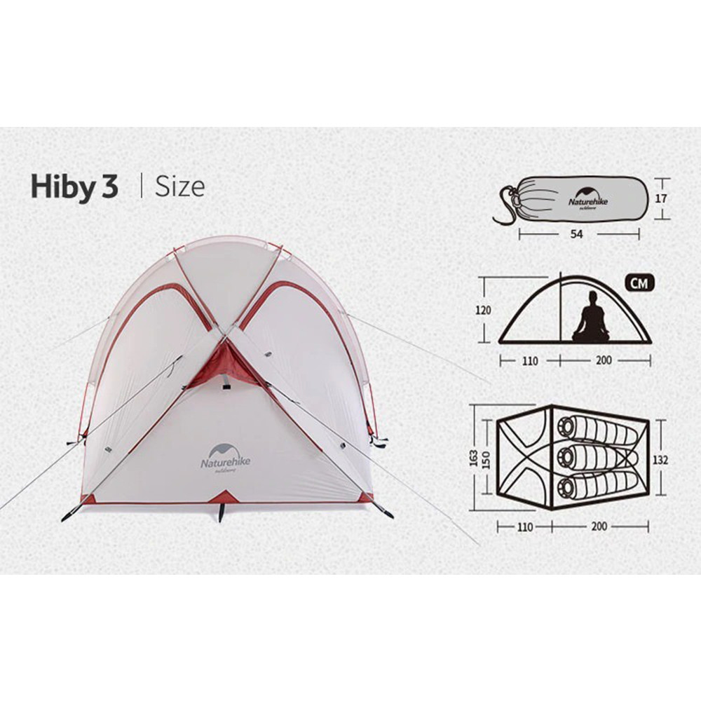 A barraca Hiby 3 da Naturehike agora está ainda mais leve e resistente. Uma das barracas mais robustas da marca, feitas para aguentar ventos fortes e condições climáticas extremas, uma clássica barraca de 4 estações que além de trazer confiança, devido sua estrutura estável e forte, ainda proporciona conforto ao usuário por conta de sua maneira de montar e distribuição de espaço.