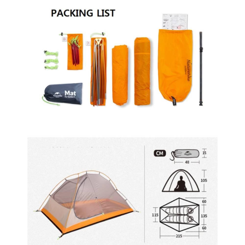 A compra da barraca Spider 2 para 2 pessoas da Naturehike é indicada para praticantes de Cicloturismo, Montanhismo, Trekking e para todos os entusiastas que querem o melhor equipamento e presam pelo baixo peso.