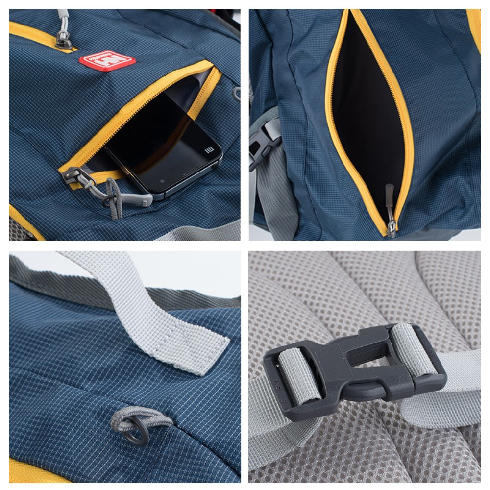 O Mochila foi projetada com um compartimento principal com excelente espaço interno, e mais dois bolsos sendo um vertical e outro horizontal com fechamento em zíper para armazenamento de outros itens, como um mapa de localização, ou mesmo documentos e algumas barras de cereal e dois bolsos laterais em malha para comportar squeezes ou garrafas dobráveis. Ela ainda possui fitas extras para fixação de equipamentos na parte externa.
