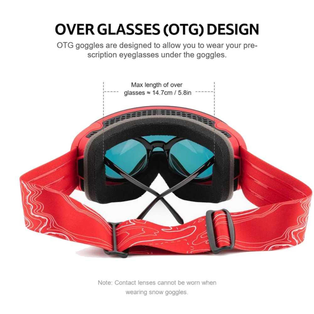 Sua fixação na cabeça é feita por uma tira elástica emborrachada anti deslizante, com regulagem, que possui tensão moderada para manter o corpo do óculos fixo no seu rosto sem gerar desconforto por excesso de aperto. Além disso, a lente é fabricada em material de PC no estilo OTG, sistema projetado para permitir que você use seus óculos de grau sob os óculos de Ski.