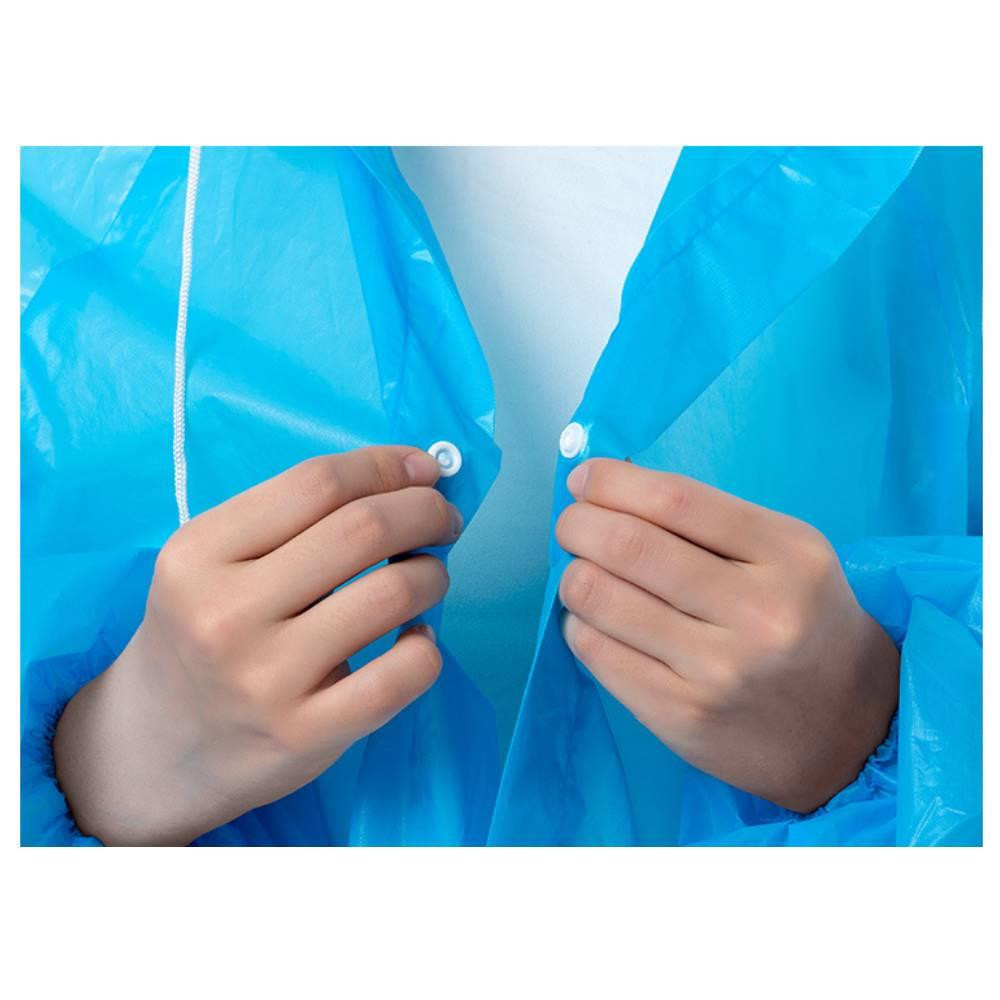 Com design de jaqueta, o fechamento desse poncho é feito através de botões na parte frontal, sendo fácil e rápido de vesti-lo, elásticos no punho para impedir a entrada da água e capuz com ajuste feito por cordão.